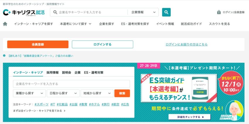 また、企業研究に役立つコラムやイベント情報も豊富で、業界理解を深めながら就職活動を進められる環境が整っています。