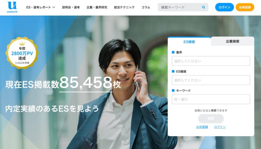 | unistyle | 選考対策サイト | 非公開(対策中心) | ES閲覧、模範解答 | 内定者ESの掲載量が多い | https://unistyleinc.com/ |